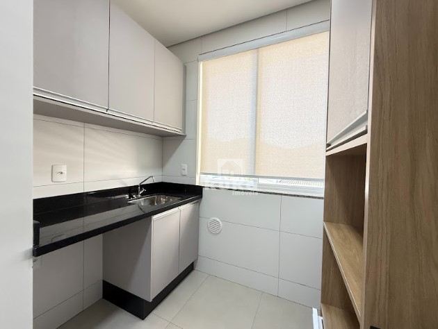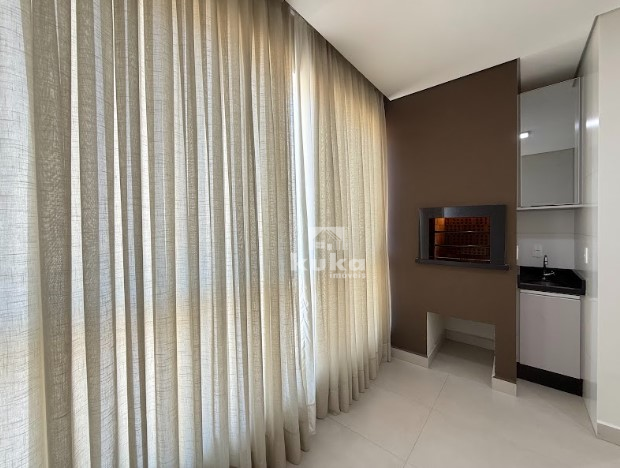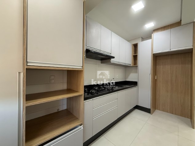 O apartamento está mobiliado com cortinas, móveis de cozinha, fogão, depurador de ar, móveis de lavanderia e os móveis dos dois banheiros, ar-condicionado na suíte.
