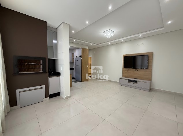 Possui 1 suíte + 2 dormitórios, sala de jantar, sala de estar, cozinha integrada, 2 banheiros, área de serviço, sacada com churrasqueira integrada, 2 vagas de garagem, elevador, salão de festas.