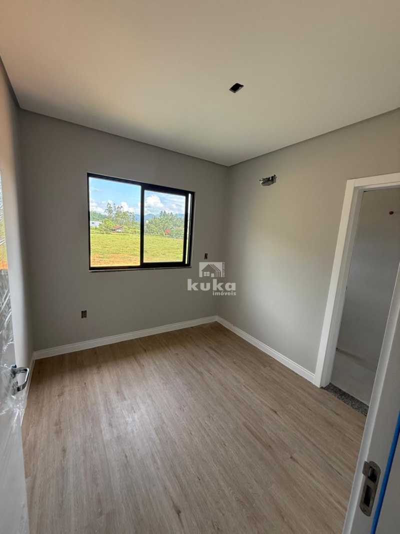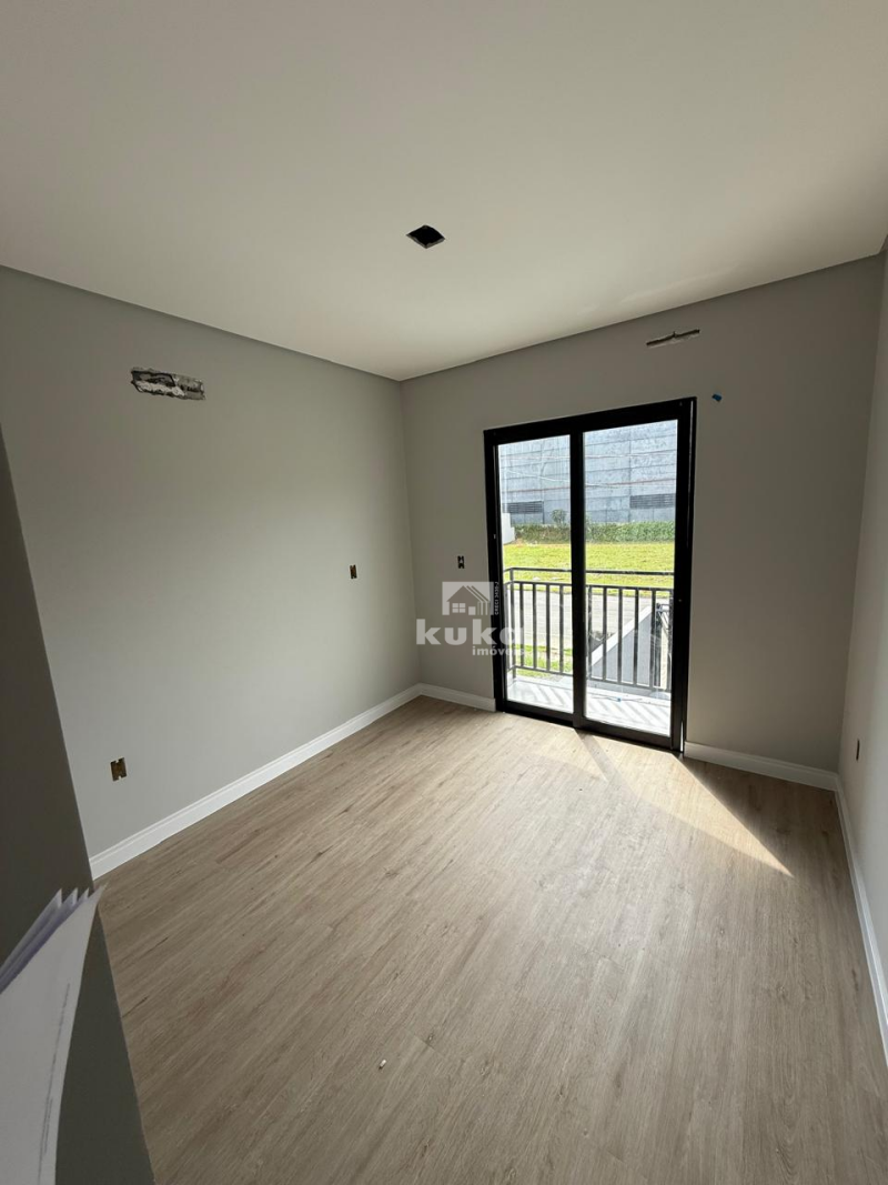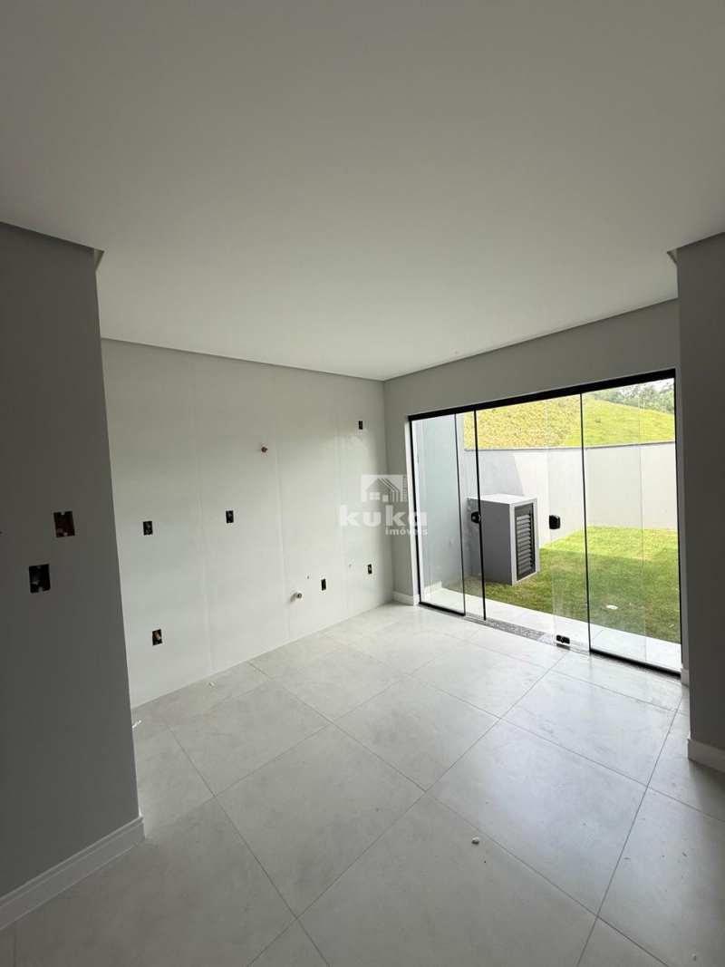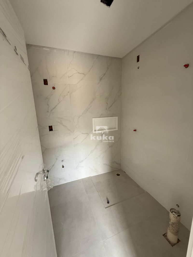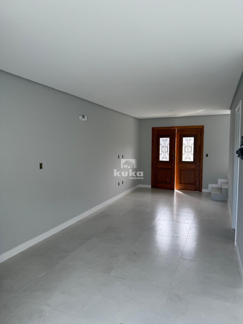 Casa geminada possui 2 suítes, sala de estar, cozinha, área de serviço, 1 bwc social, 1 lavabo, 1 vaga de garagem, jardim, quintal, alvenaria, murado.