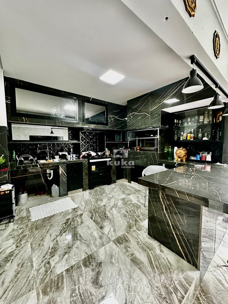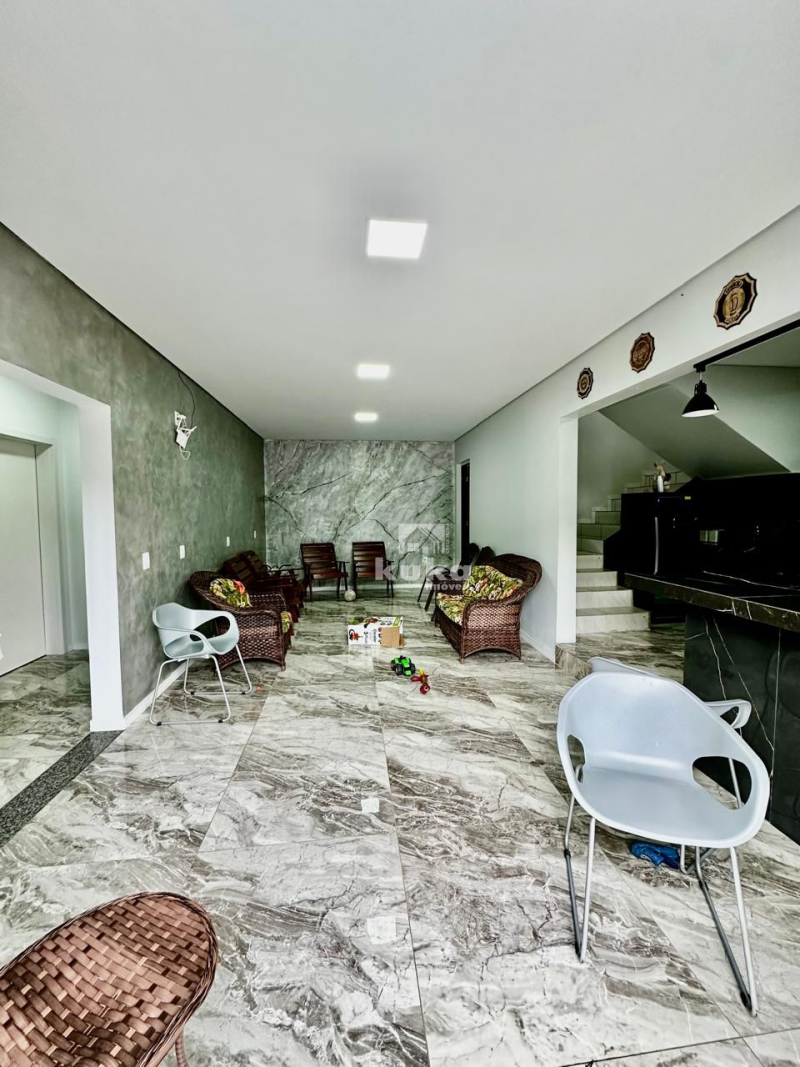 Possui 1 suíte + 3 dormitórios, sala de estar, sala de jantar, cozinha, copa, lavanderia, bwc social, 3 vagas de garagem, escritório, varanda, churrasqueira, piscina, jardim, murado.