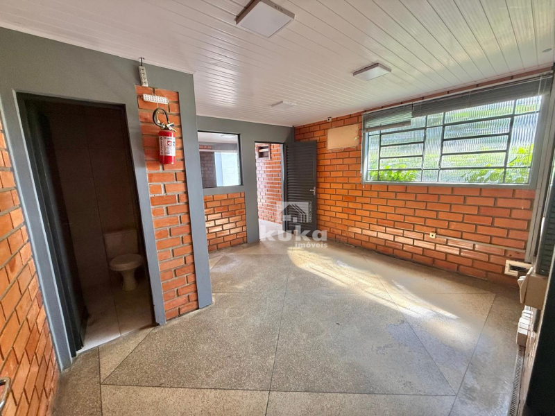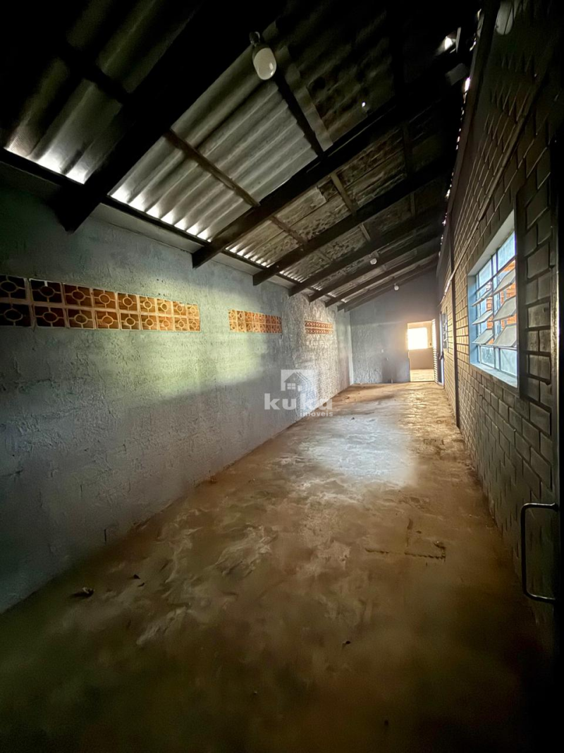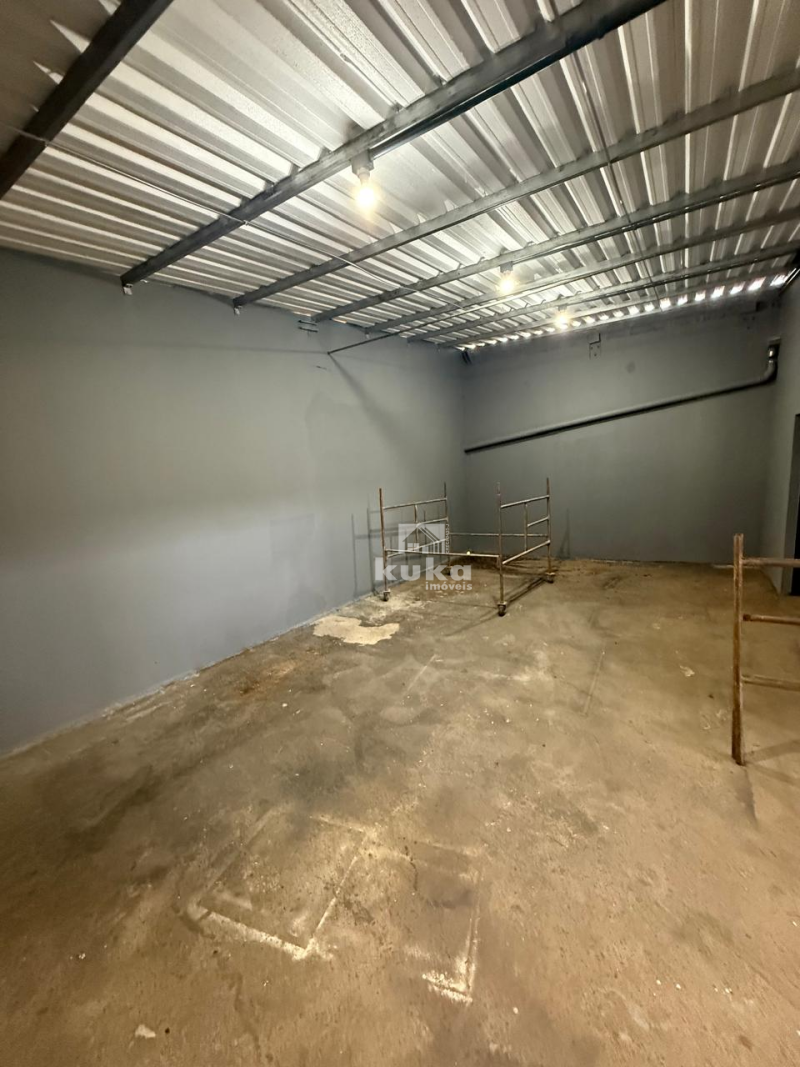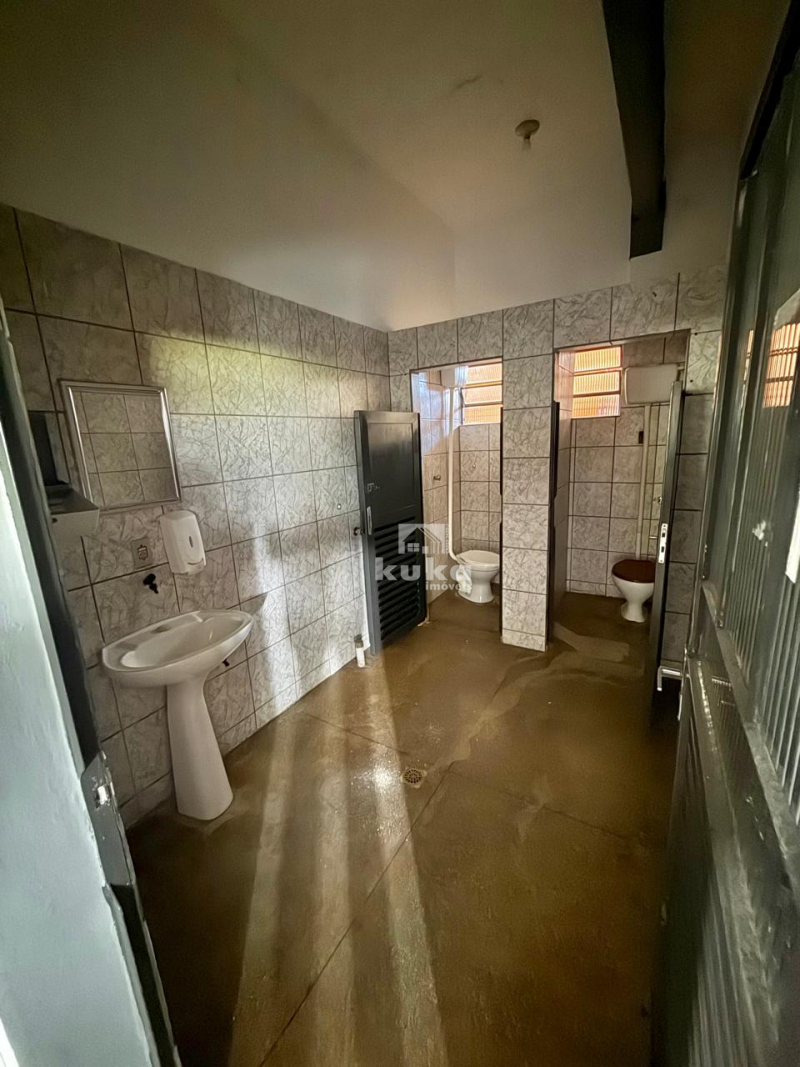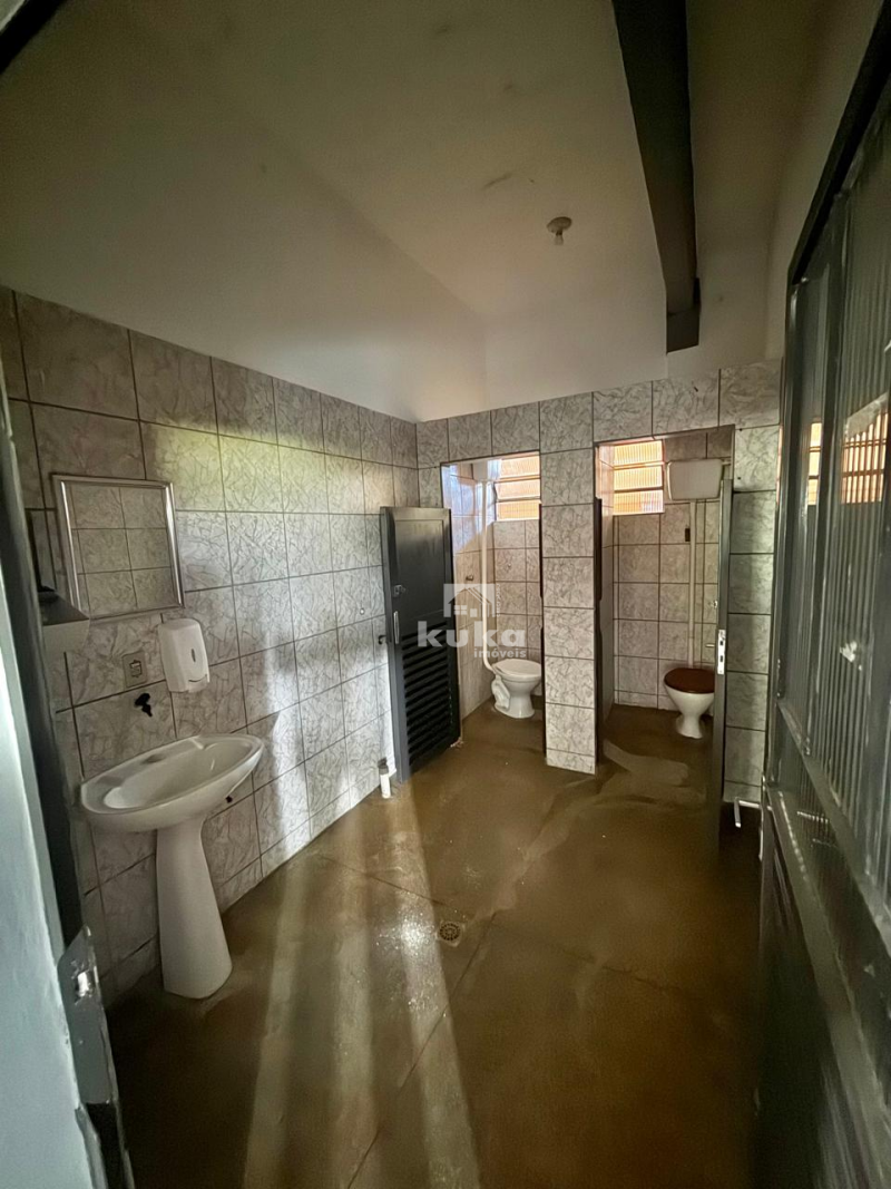 Galpão possui 2 banheiros, rua asfaltada e ônibus próximo.