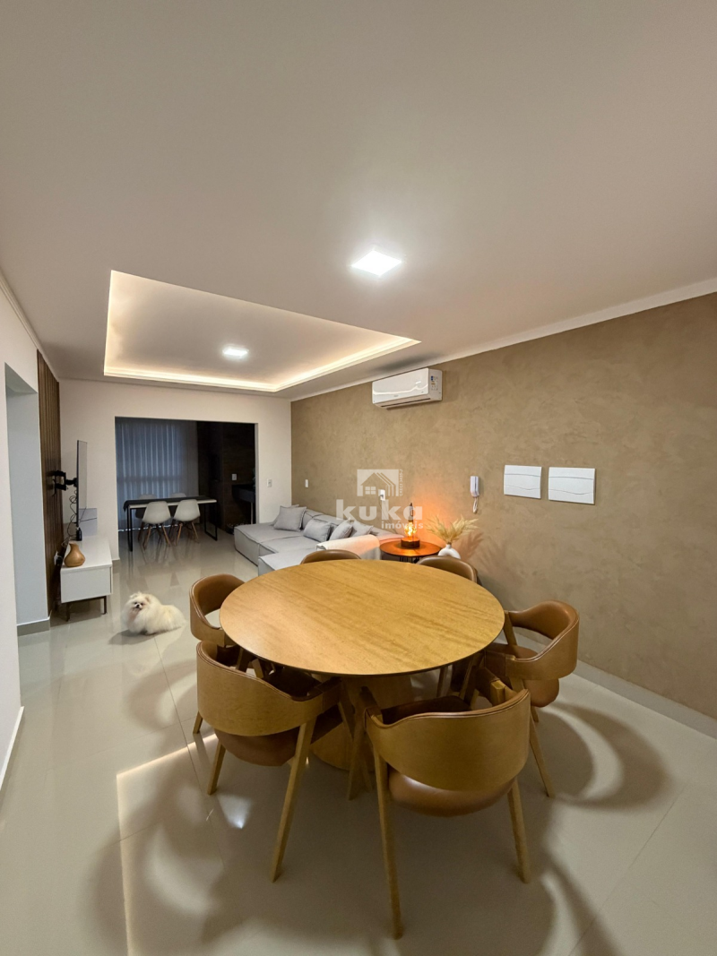 Apto semimobiliado, possui 2 dormitórios, sala de jantar, sala de estar, cozinha, área de serviço, 1 bwc social, sacada com churrasqueira, elevador, inst. de fone, vaga de garagem.